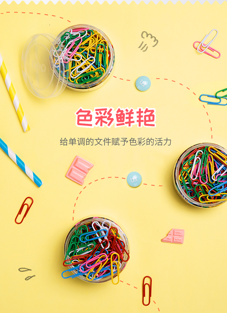 商品名稱:得力0038 彩色回形針 3#29mm金屬曲別針 辦公用品 160枚/筒