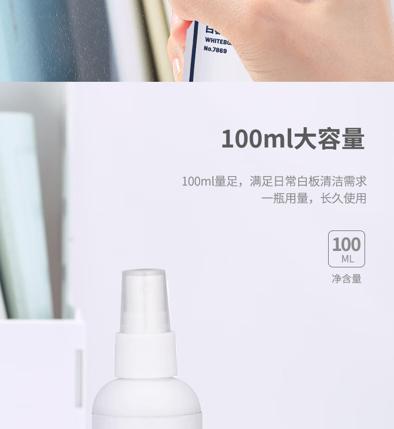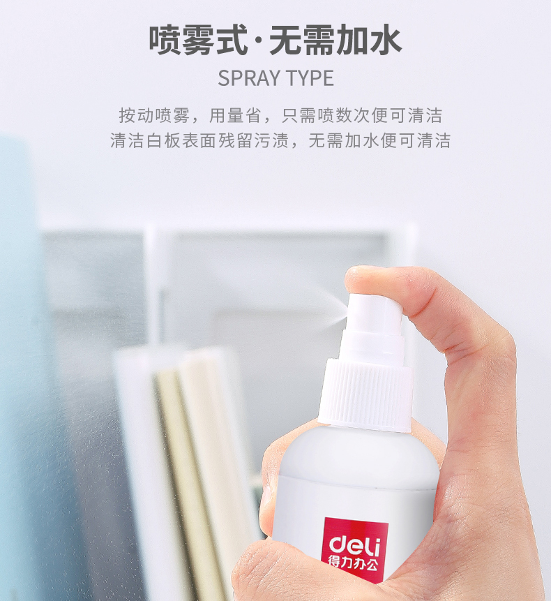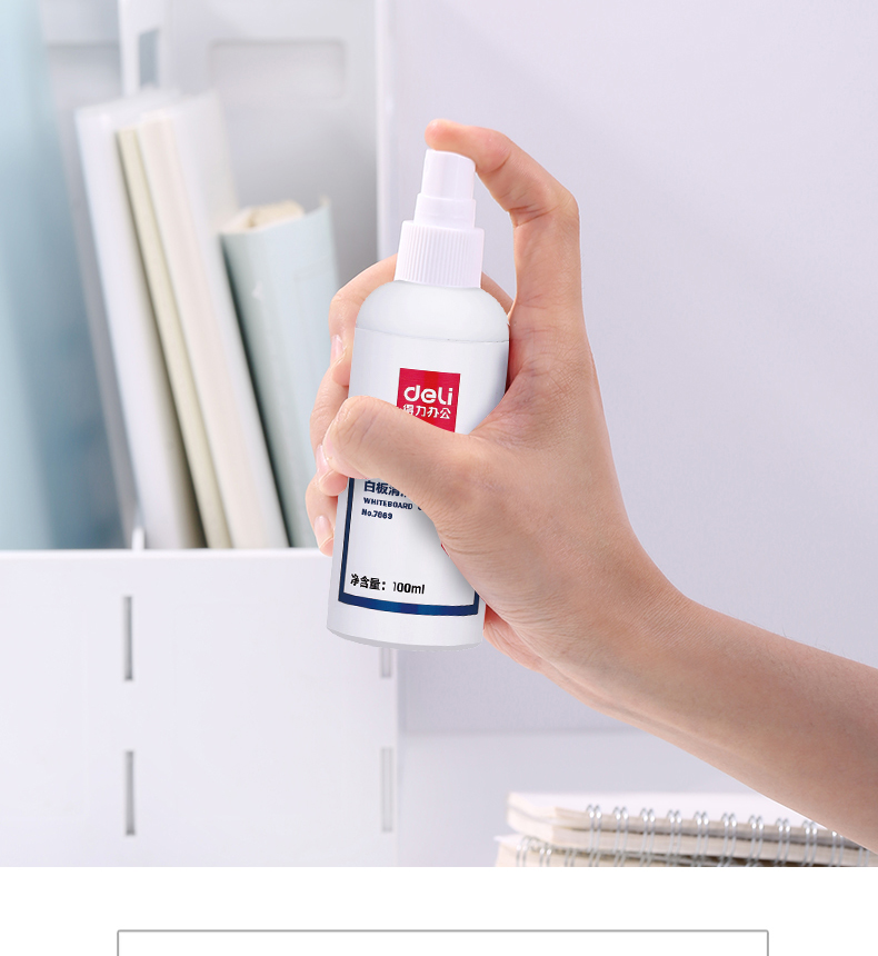 商品名稱:得力7869 白板清潔劑 100ml擦除消除液清潔劑神器清洗劑去污清洗液 單位:瓶