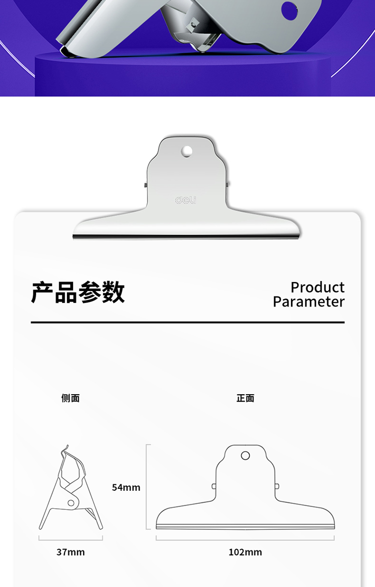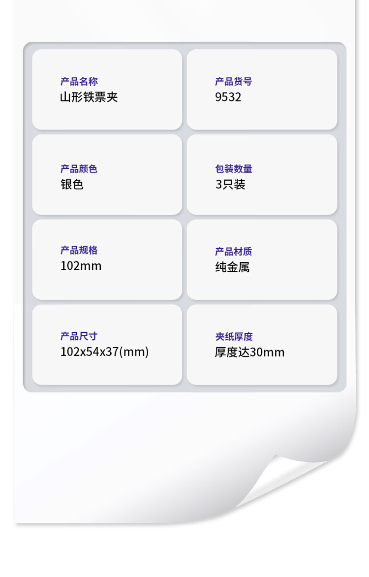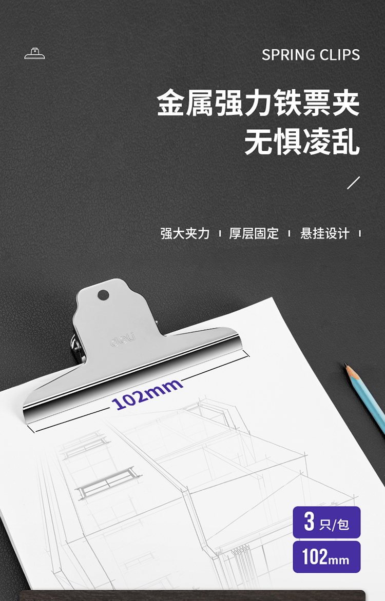 商品名稱:得力9532 山形鐵票夾 102mm中號財務金屬票據(jù)文件夾子 辦公用品 3只/包