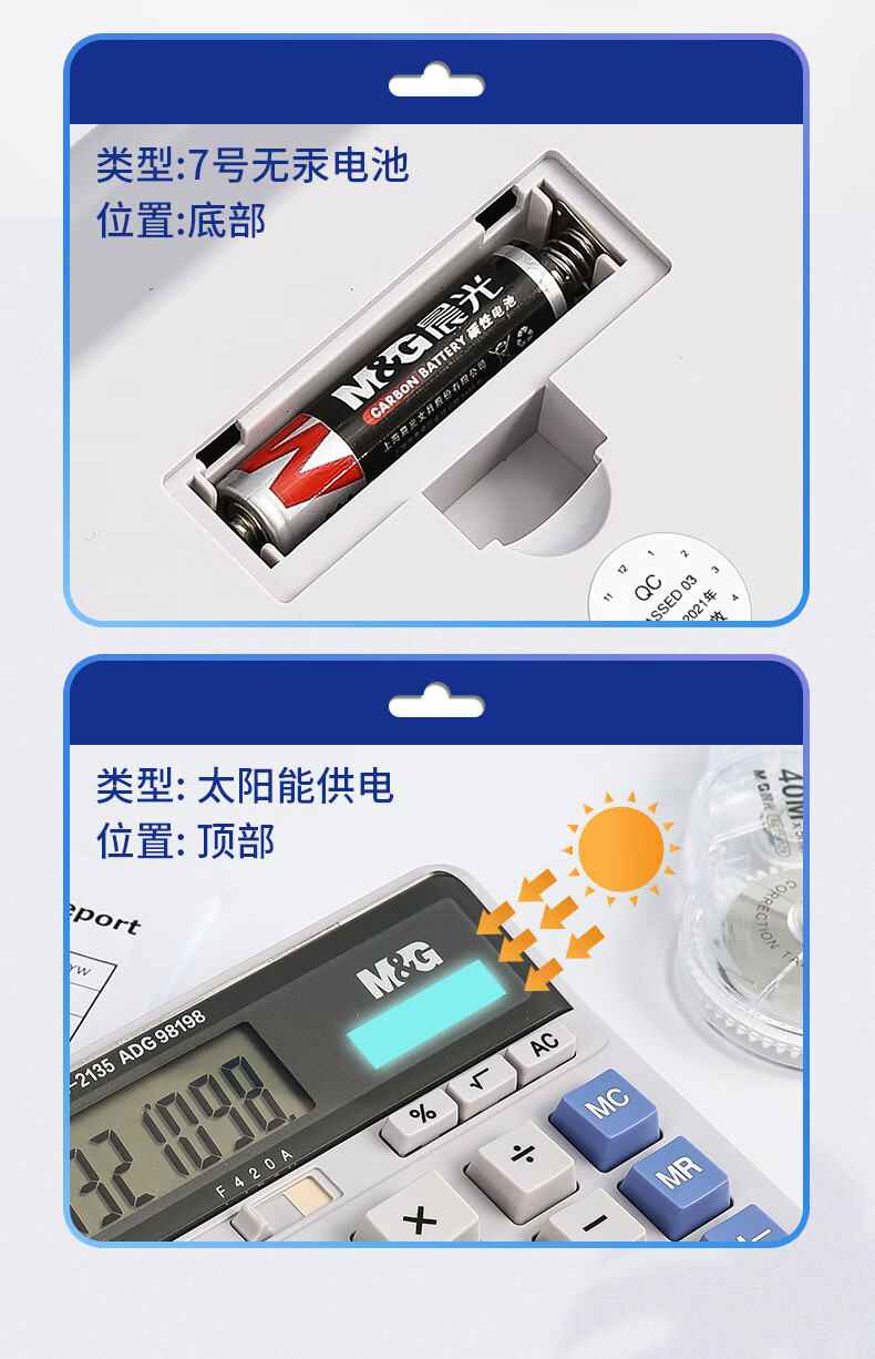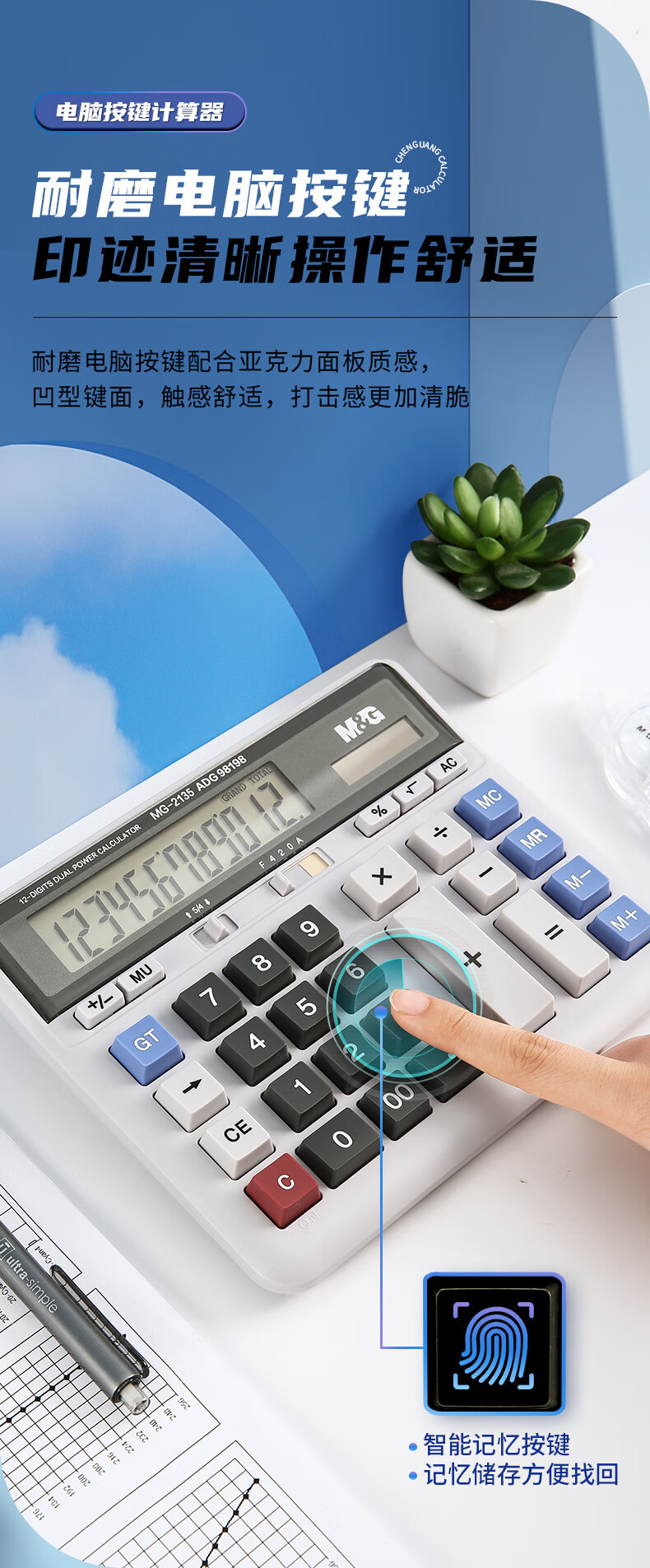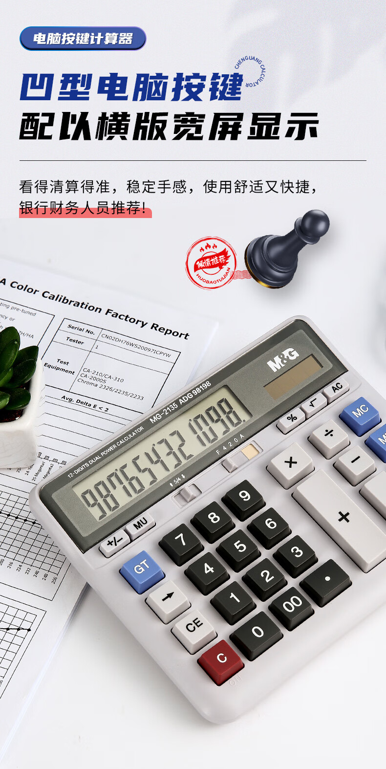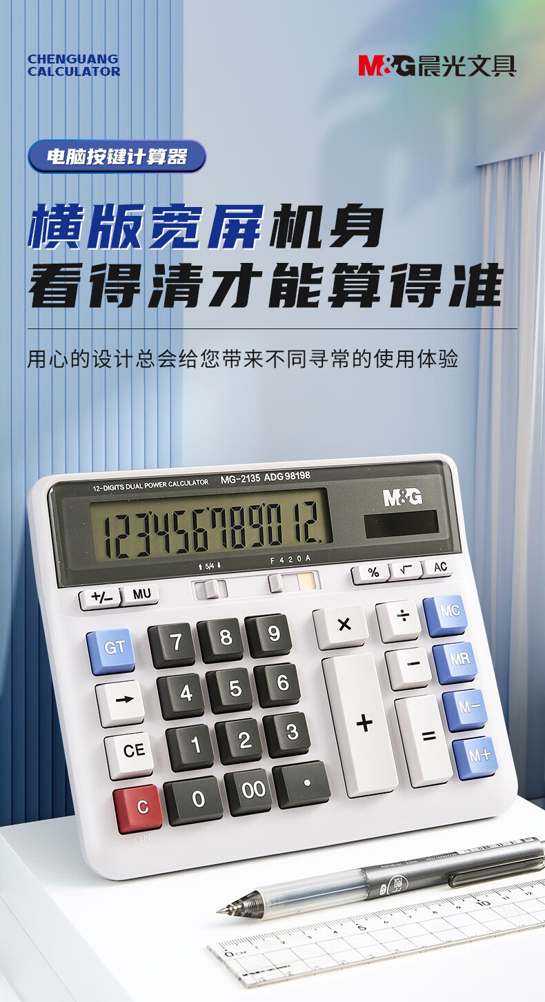 商品名稱:晨光ADG98198 計算器 12位大屏雙電源計算機 單個裝