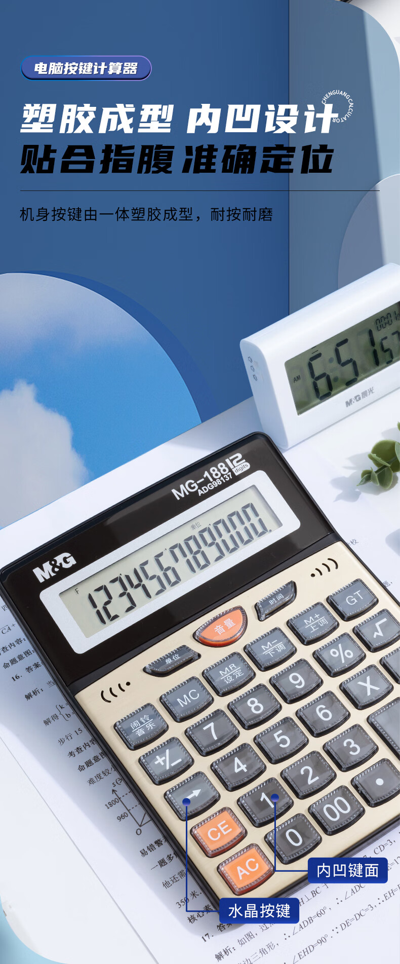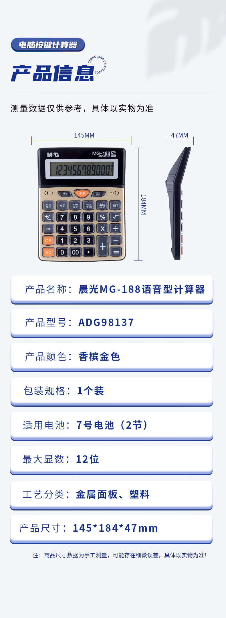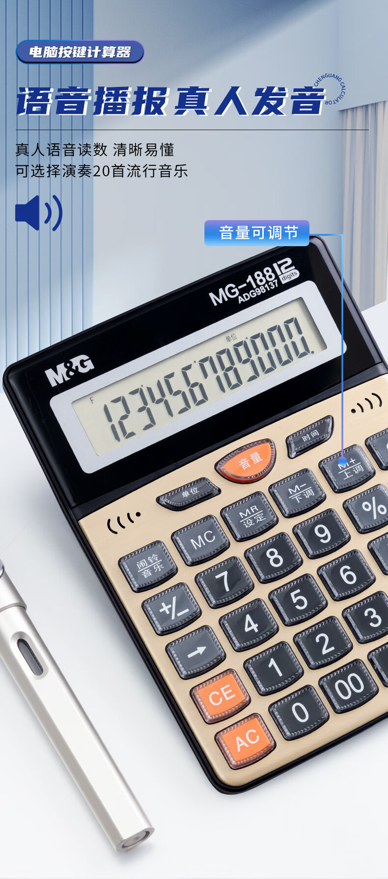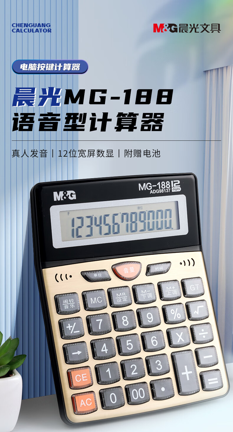 商品名稱:晨光ADG98137 金色金屬面板計算器 語音型桌面計算機 12位大屏幕 單個裝