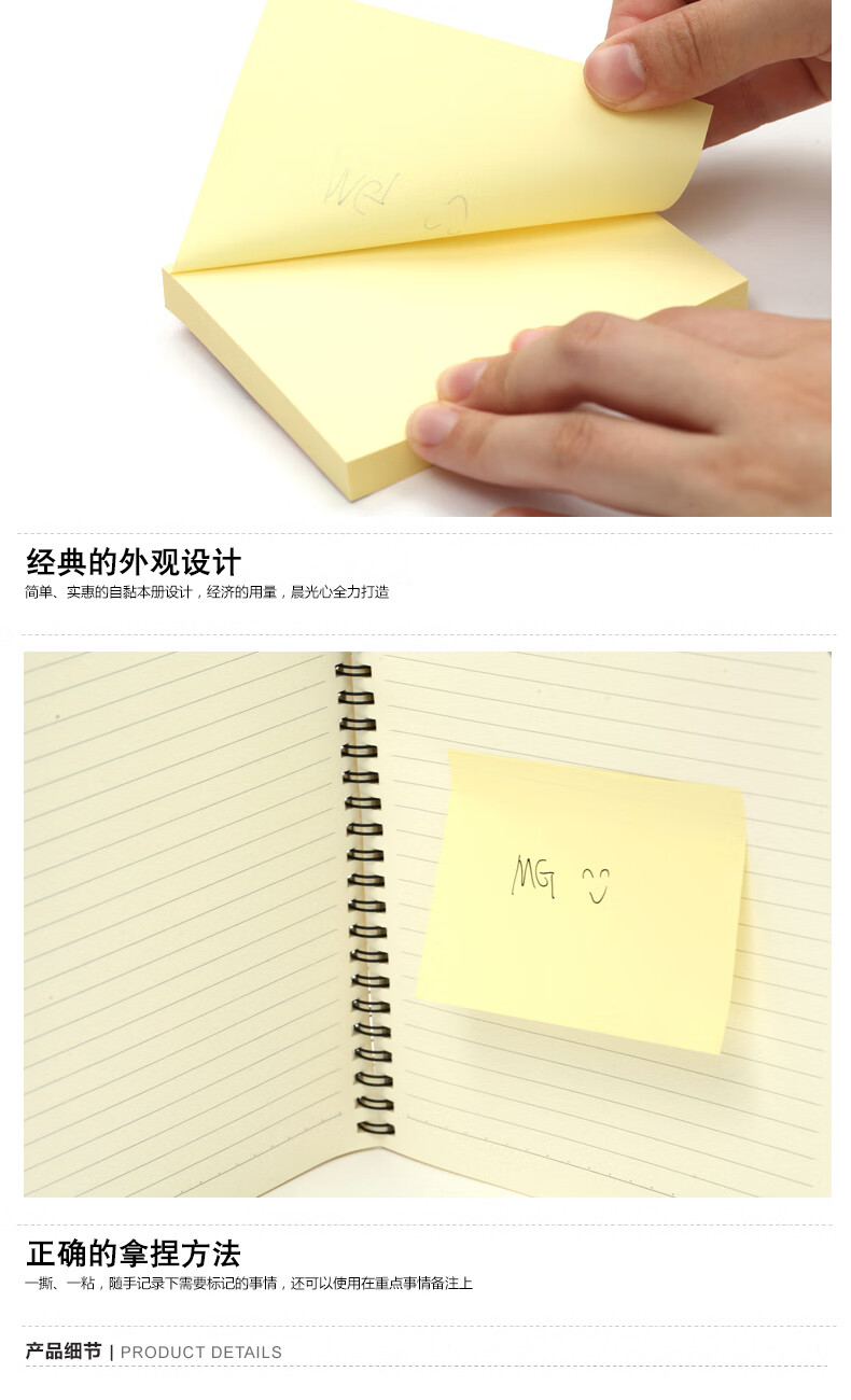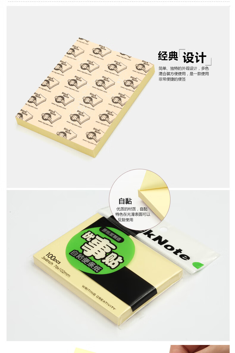 商品名稱:晨光YS-04 便利貼 3X4優(yōu)事貼 100頁(yè)自粘黃色留言貼便簽紙76X102mm 單位:本