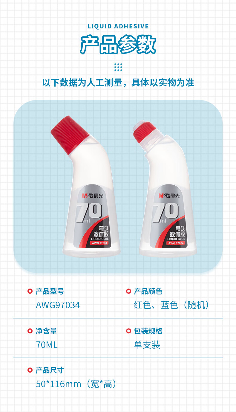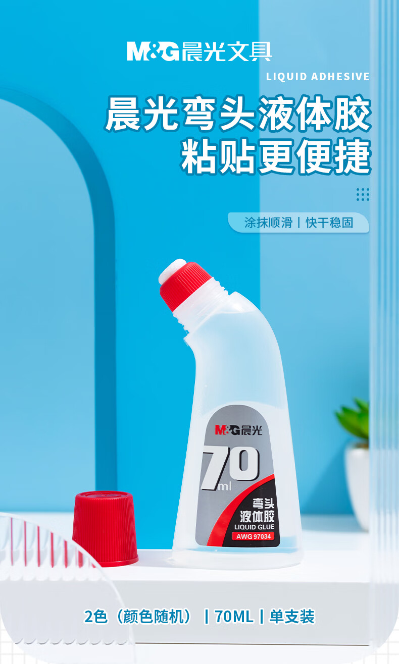 商品名稱:晨光AWG97034 彎頭液體膠水 70ml高粘度手工黏膠 單個裝 顏色隨機
