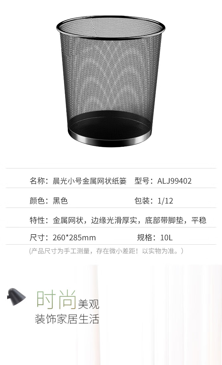 商品名稱:晨光ALJ99402 小號垃圾桶 金屬網(wǎng)狀辦公紙簍垃圾筐垃圾籃 單個裝