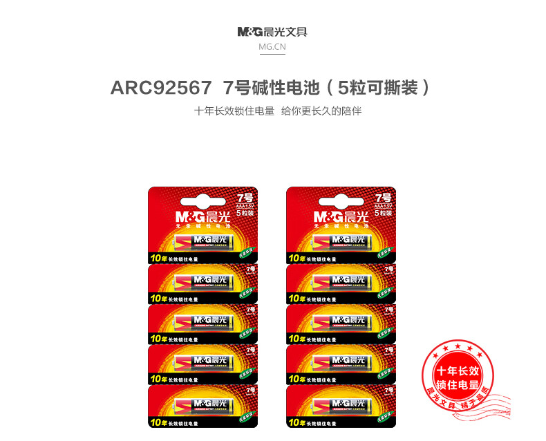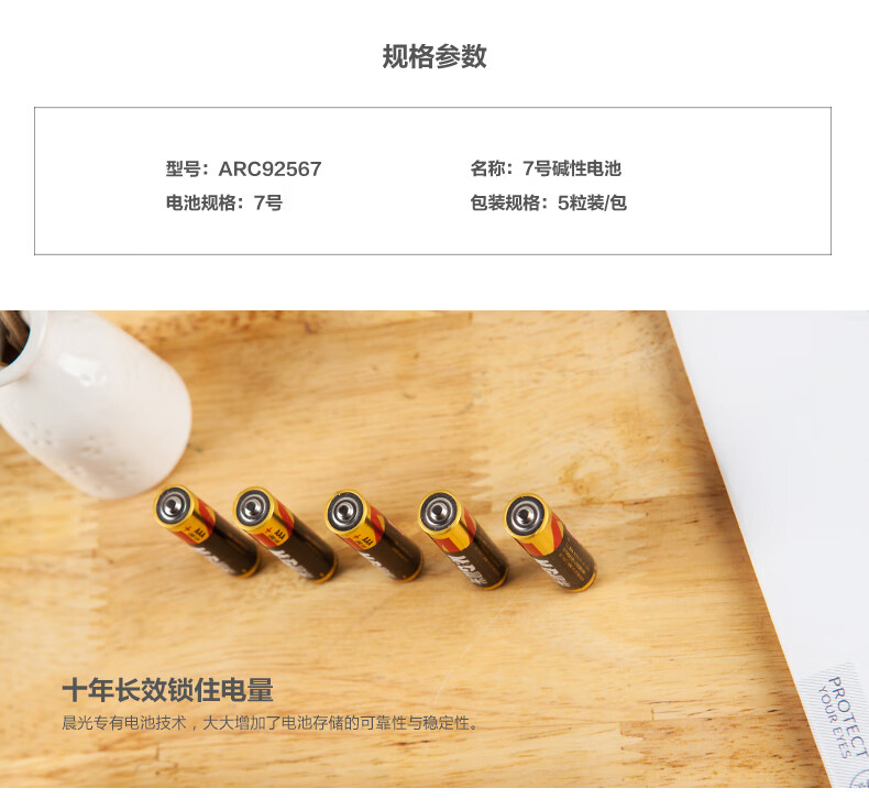 商品名稱(chēng):晨光ARC92567 7號(hào)堿性電池 可撕裝 5粒/卡