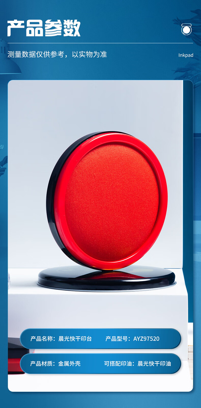 商品名稱(chēng):晨光105mm金屬圓蓋財(cái)務(wù)快干印臺(tái)印泥 紅色 單個(gè)裝AYZ97520