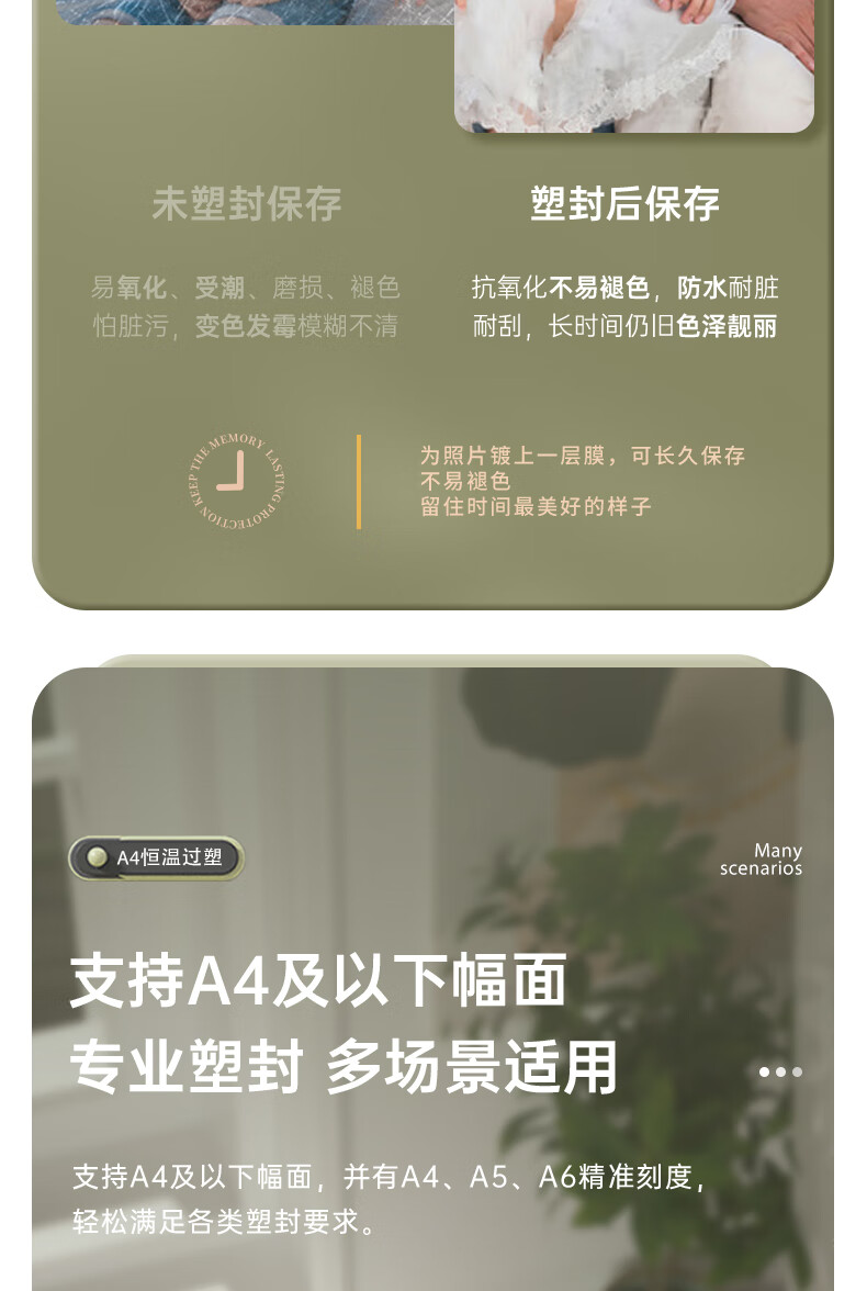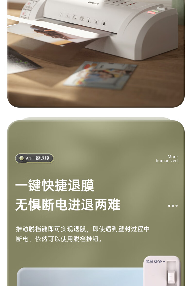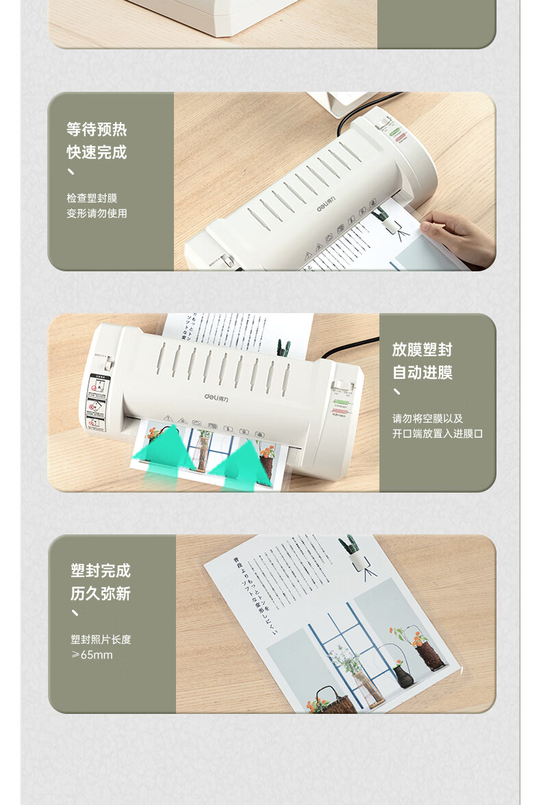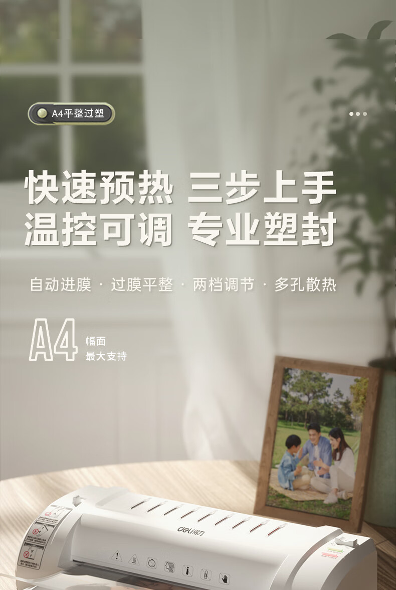 商品名稱:得力照片塑封機(jī)過塑機(jī) A4及以下相片過膠壓膜機(jī)封膜機(jī)覆膜機(jī) 3893