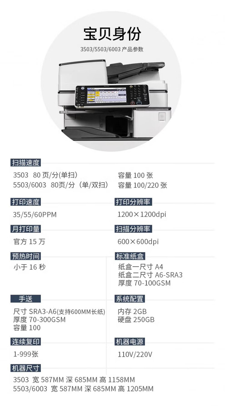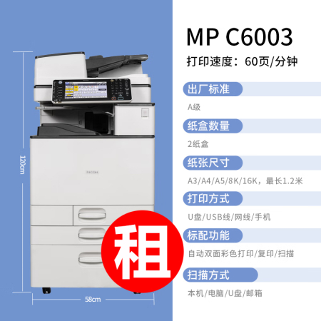 商品名稱:茂名湛江理光MPC6003彩色激光復印機租賃 A3大型一體機出租