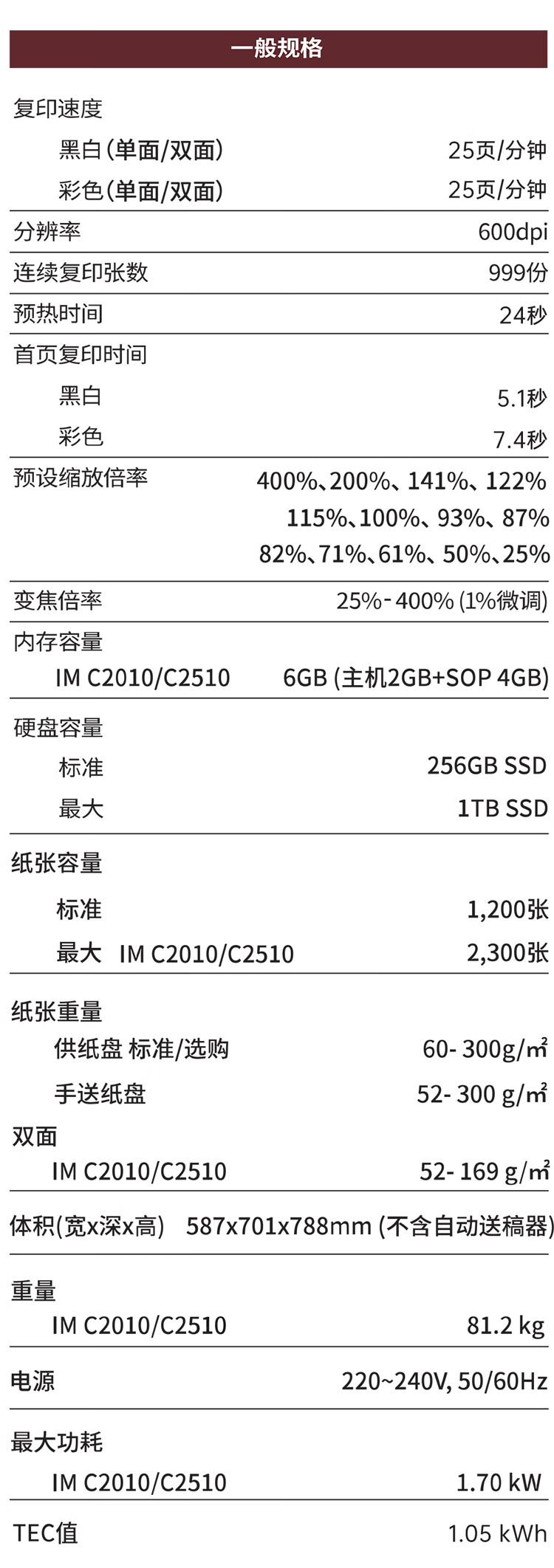 商品名稱:理光 IM C2510 A3彩色多功能數(shù)碼復(fù)合機(jī) 25頁/分鐘