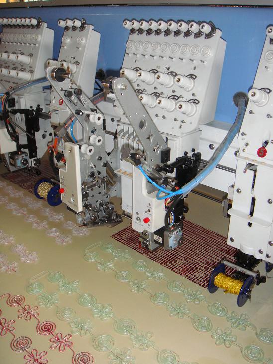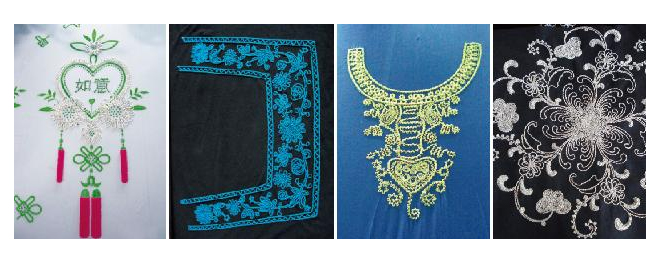 簡(jiǎn)易刺繡系統(tǒng)。其在平繡基礎(chǔ)上,增加了分頭控制簡(jiǎn)易盤(pán)帶繡(盤(pán)帶 繡和鋸齒繡等)的功能,基本實(shí)現(xiàn)了傳統(tǒng)盤(pán)帶繡的所有功能,繡作效 果也有顯著提高,更好地滿足了實(shí)際繡作過(guò)程的需要。不占用單獨(dú)機(jī) 頭位,并且和金片裝置一樣,可以加裝在首、末針位置,有效的節(jié)省 空間。安裝方便,簡(jiǎn)單易用,運(yùn)轉(zhuǎn)速度顯著上升,補(bǔ)繡質(zhì)量和生產(chǎn)效 率也得到很大提高,真正實(shí)現(xiàn)了速度與繡品質(zhì)量的完美結(jié)合, |